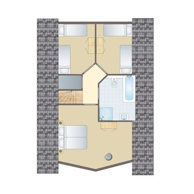 - Drei Schlafzimmer mit jeweils zwei Boxspring-Einzelbetten auf der ersten Etage