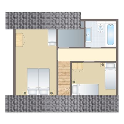 - Schlafzimmer mit zwei Boxspring-Einzelbetten auf der ersten Etage